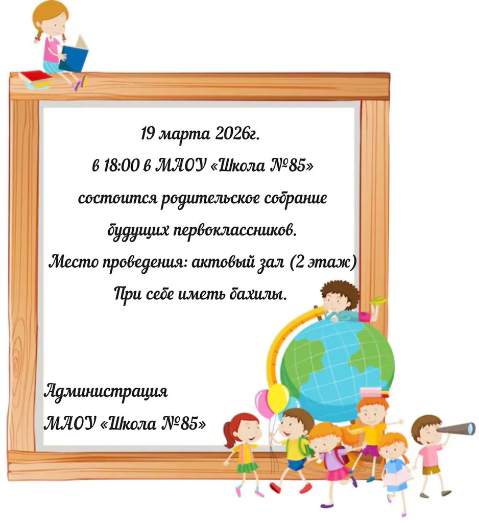 ПРИЕМ В 1 КЛАСС 2026-2027 УЧЕБНОГО ГОДА В МАОУ «ШКОЛА №85» НАЧИНАЕТСЯ С 01.04.2026 ГОДА.